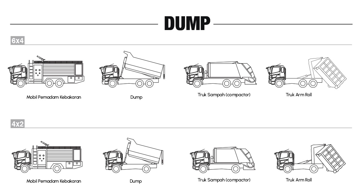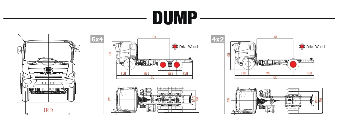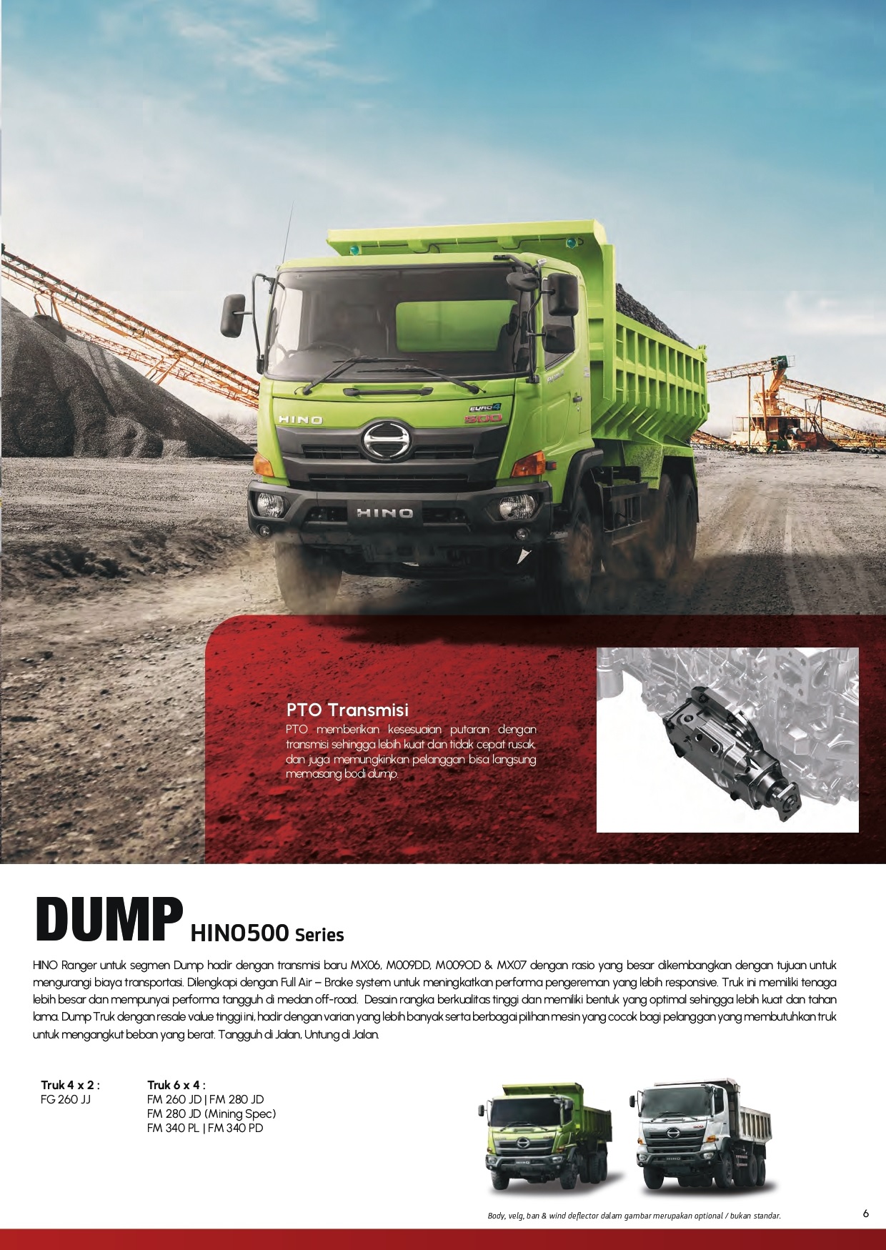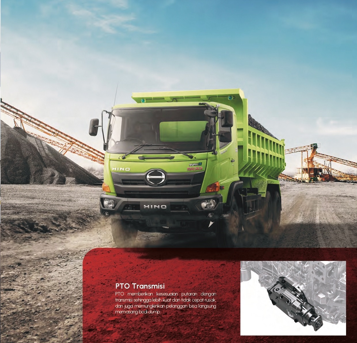 HINO Ranger untuk segmen Dump hadir dengan transmisi baru MX06, MX09DD, MX09QD & MX07 dengan rasio yang besar dikembangkan dengan tujuan untuk mengurangi biaya transportasi. Dilengkapi dengan Full Air – Brake system untuk meningkatkan performa pengereman yang lebih responsif. Truk ini memiliki tenaga lebih besar dan mempunyai performa tangguh di medan off-road. Desain rangka berkualitas tinggi dan memiliki bentuk yang optimal sehingga lebih kuat dan tahan lama. Dump Truk dengan resale value tinggi ini, hadir dengan varian yang lebih banyak serta berbagai pilihan mesin yang cocok bagi pelanggan yang membutuhkan truk untuk mengangkut beban yang berat. Tangguh di Jalan. Untung di Jalan.